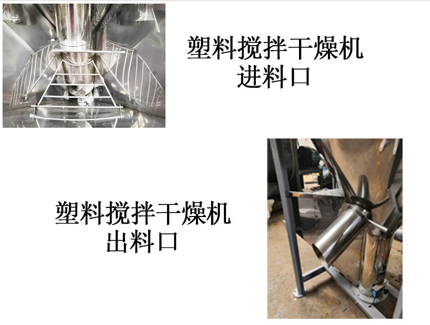 立式攪拌干燥機主要用于多種顏色塑料顆粒的混合,干燥機是注塑機、造粒機的必備配套設(shè)備之一,塑料粒子從進料斗進入,在螺旋葉片推進力的作用下,沿著葉片表面向上滑動前進在上部的離心力的作用下,向桶體四周散開,散開的物料不斷向下移動,由循環(huán)出料口和桶內(nèi)循環(huán)料口不斷被螺旋葉片帶動提升。這樣反復(fù)循環(huán),達到混合目的,與此同時空氣經(jīng)鼓風(fēng)機送至電加熱箱中,加熱后成為熱風(fēng)再 經(jīng)溫控表自動控制,以均勻適合的熱風(fēng)從樹脂之間一路穿透,穿過物料層,進行熱交替不斷帶走濕氣,樹脂粒子由上而下,下降過程中連續(xù)不斷得到吹掃干燥,完成高效率干燥和混合工藝。